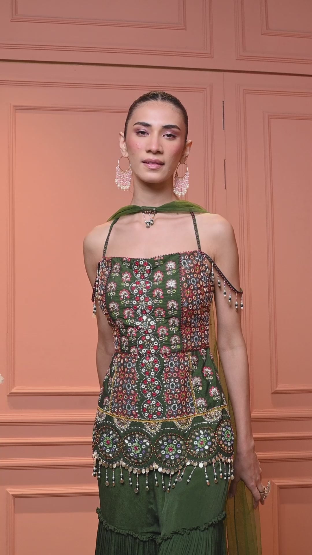 Bottle Green Georgette Short Shirt With Gharara And dupatta