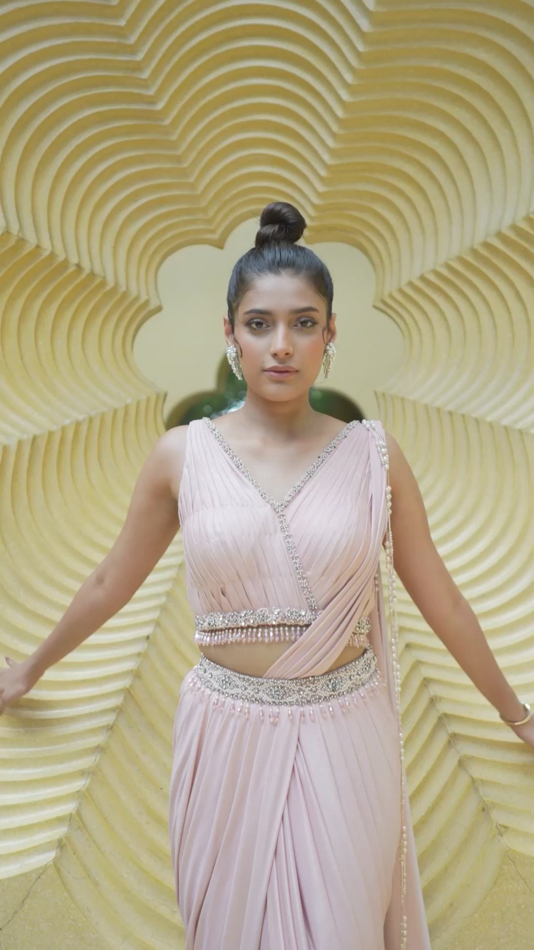 Draped Light Pink Saree With Ruching & Crystal Work