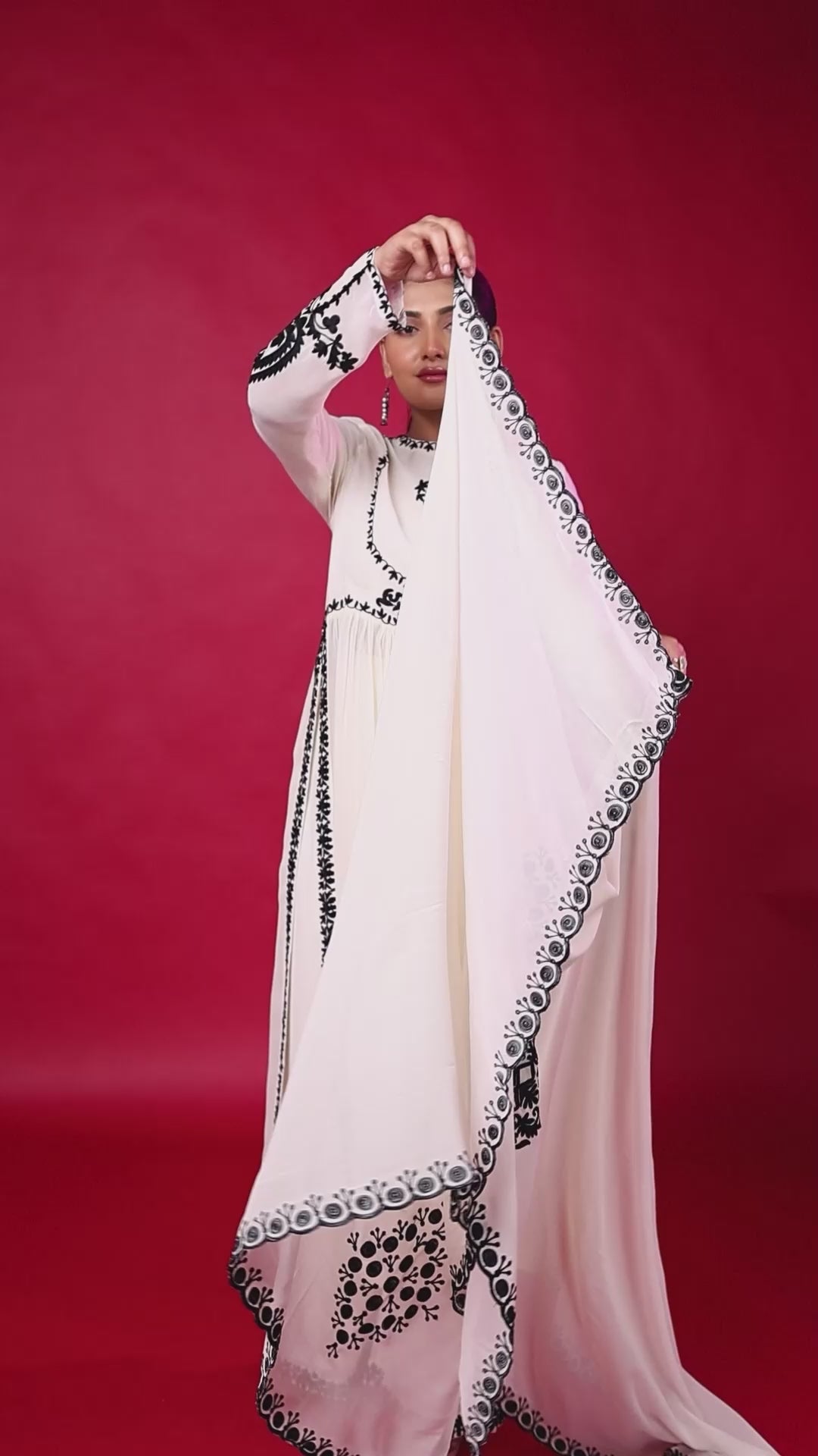 Ivory with Black aari Embroidered Georgette Co-Ord Set