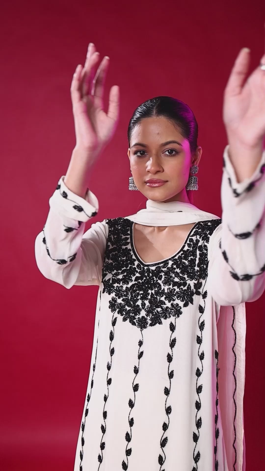 Ivory with Black Crystal Embroidered Georgette Co-Ord Set