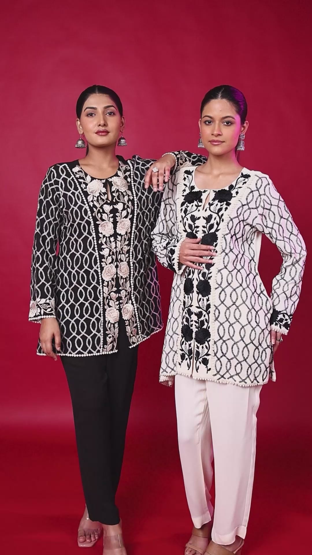 Ivory with Black machine Embroidered Georgette Co-Ord Set