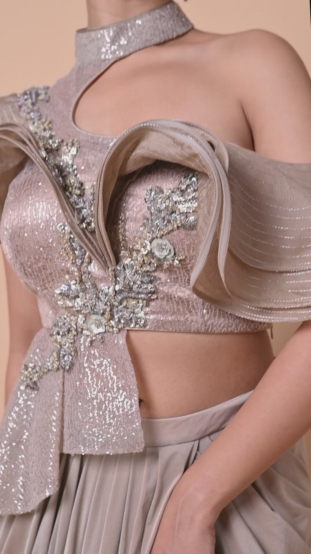 Lycra Champagne Gold Saree With Sequins and Zarkan