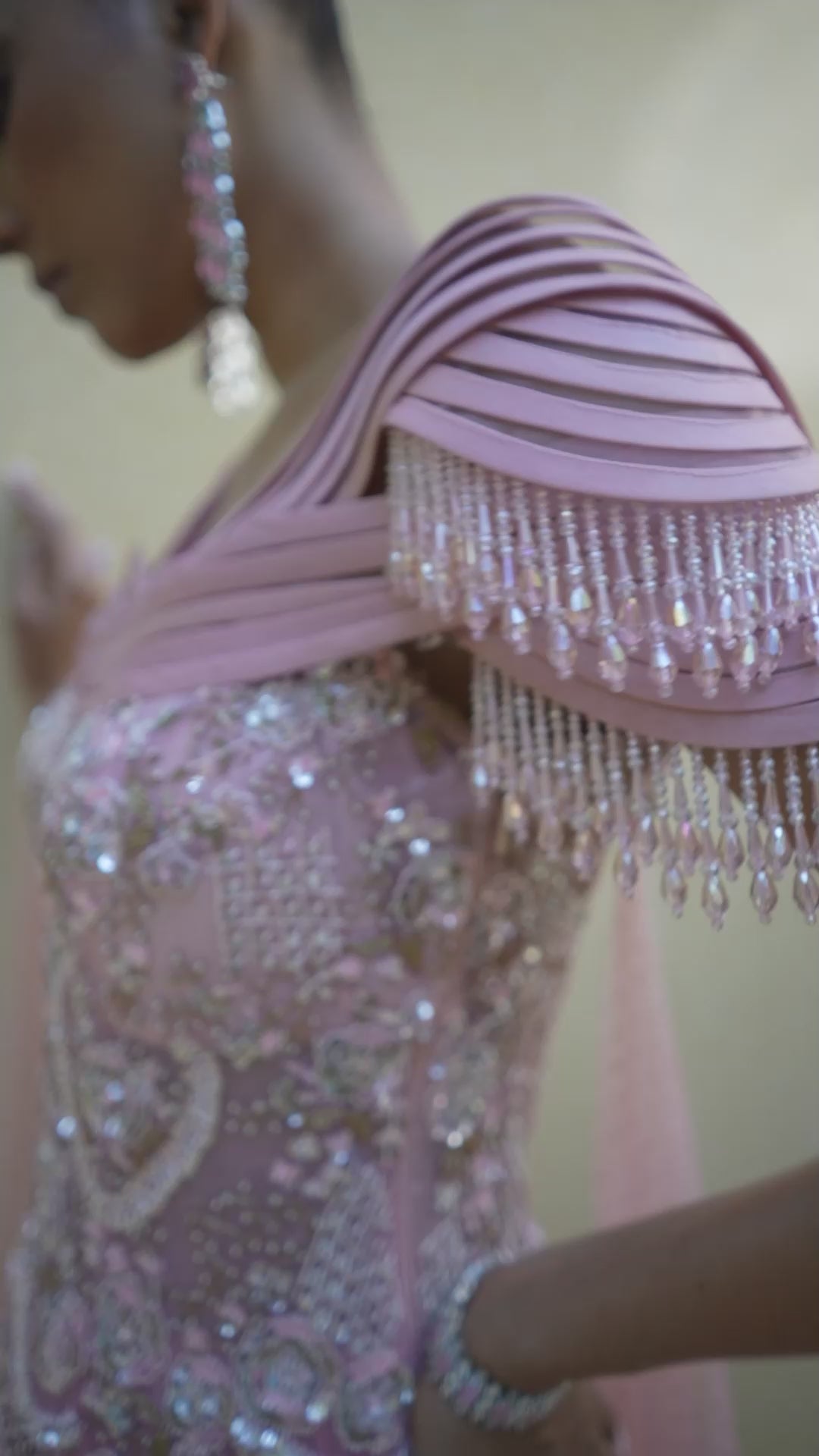 Pink Organza Gown With Bonning On Shoulder
