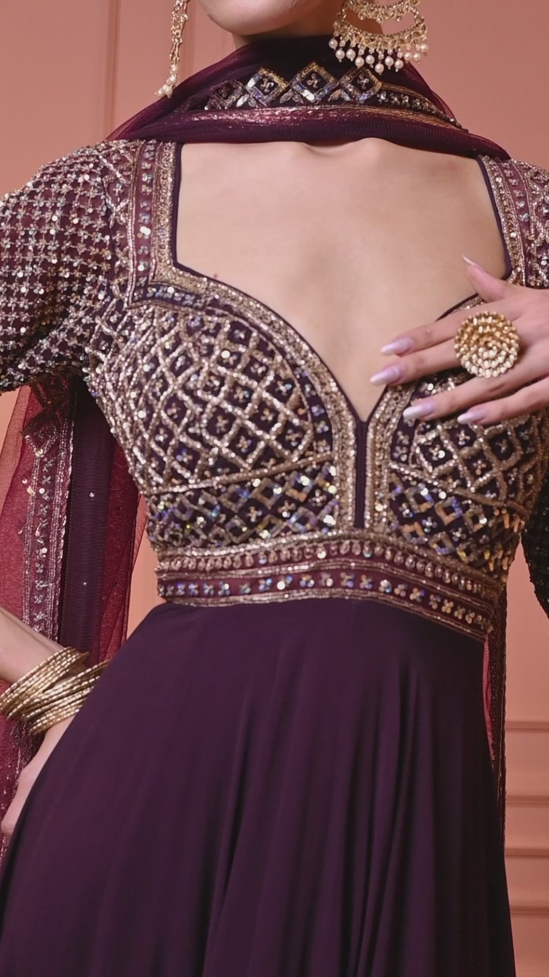 Wine Anarkali With Zarkan And Crystal Work